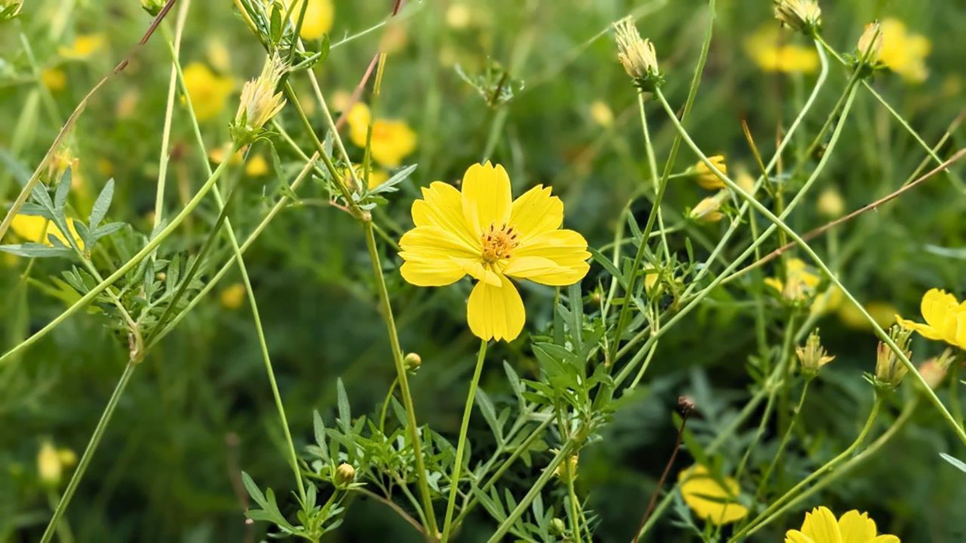 国営昭和記念公園のキバナコスモス(レモンブライト)の開花状況